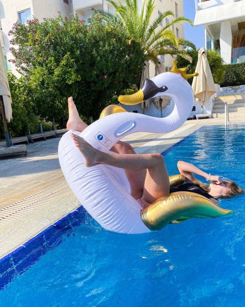 Адушкина выросла в обеспеченной семье с поддерживающими родителями: отец — предприниматель, мать занимается изобразительным искусством. Она активно ведёт свои аккаунты в социальных сетях, делясь как обычными фотографиями, так и более откровенными снимками.